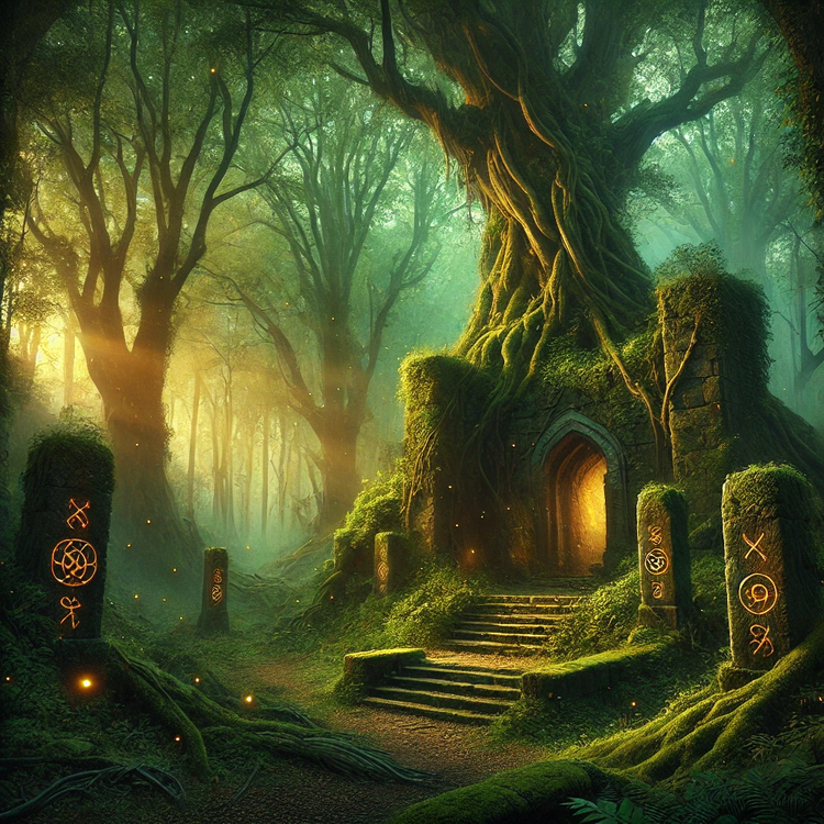 Venture into The Sylvan Keep, a sanctuary where ancient roots entwine with quiet wisdom and the pulse of the earth beats steady and true. Towering trees form a protective canopy, their emerald leaves catching dappled sunlight as the air hums with the essence of growth and renewal. The scent of moss and damp earth lingers, a reminder of nature’s embrace.